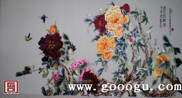 牡丹刺绣画|球友会官方入口壁画|大型手工刺绣挂画