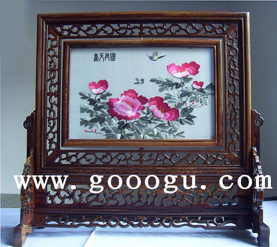 (二)中档苏州双面绣:此款一般配以红木或鸡翅木材质框架,此款的图案与普通档的基本是差不多,只是框架材质提高,绣片的整体质量提高,一般以一绒或六丝构成。目前以16*25CM(画心尺寸)为主,此款在苏州双面绣采购中的款式挑选余地越来越大,款式创新能力更高,有横摆件与竖摆放两种。这款出厂价一般在三百元左右。加上企业LOGO也是公司比较有品味的宣传品之一。笔者认为这种款式的弱点是价格偏高,礼品采购在两百元的市场比重会更大。应该结合普通档与中档,开发设计出更加适合礼品市场的球友会官方入口双面绣产品。