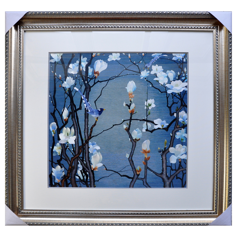 球友会官方入口玉兰花鸟刺绣收藏品画中欧式结合花鸟球友会官方入口满绣画