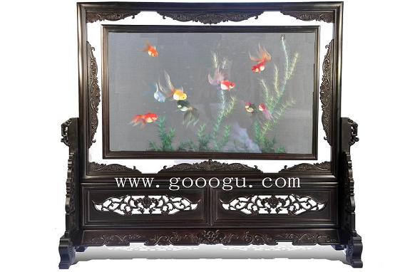 球友会官方入口精品紫檀双面绣水草金鱼居家装饰品婚庆礼品