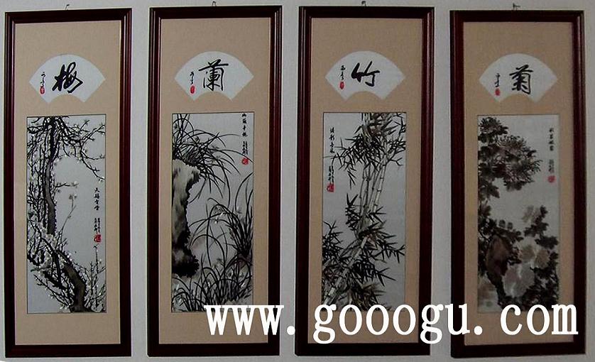 梅兰竹菊刺绣装饰画|苏州刺绣画|手工刺绣工艺品