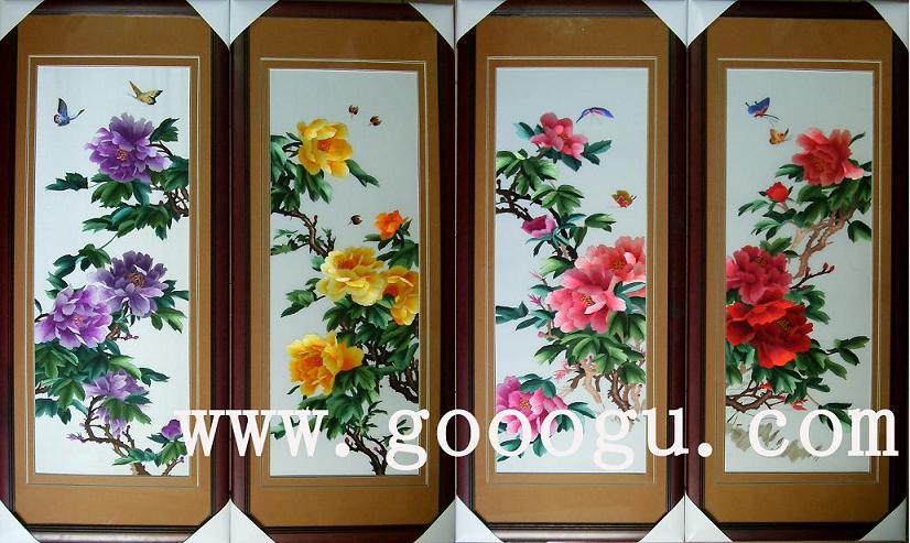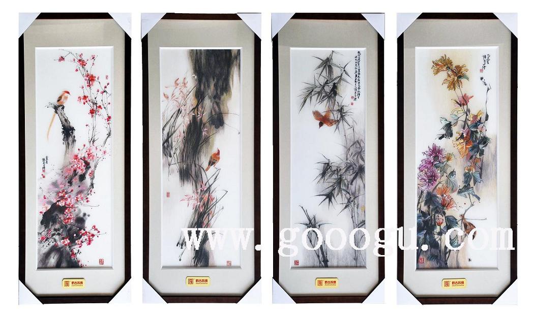 娇古球友会官方入口 手工刺绣画 中式装修壁画春夏秋冬 书房客厅画
