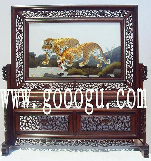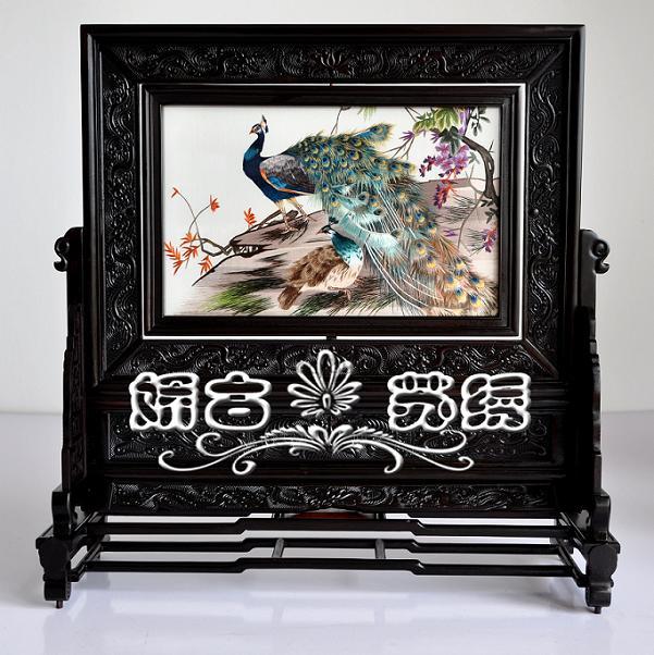 苏州高档刺绣摆件&手工双面绣品小座屏&居家刺绣台屏精品