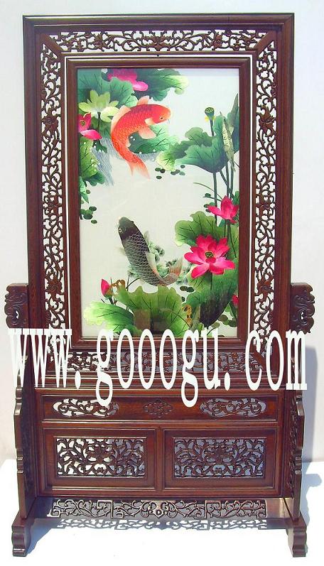 娇古球友会官方入口木质屏风 玄关双面绣 简易大方 十二红鱼图特色中国风
