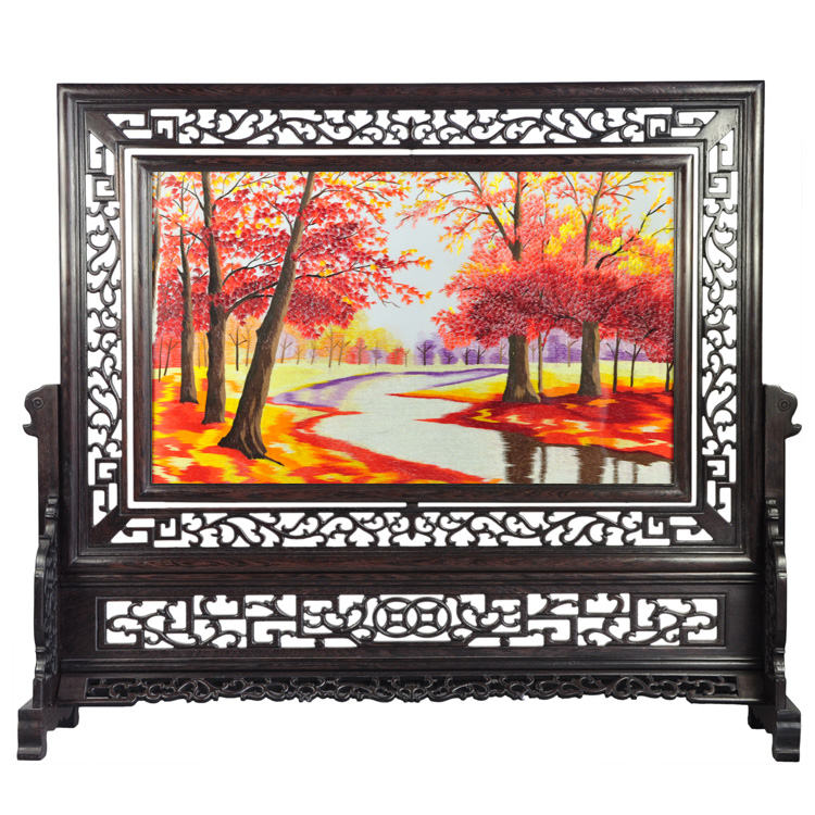 风景刺绣画红色枫林成品手工刺绣成品特色球友会官方入口送外国人礼品