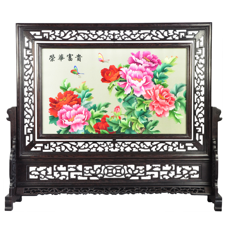 牡丹双面绣 双框鸡翅木刺绣 手工艺品 北京特色外事礼物 球友会官方入口礼品