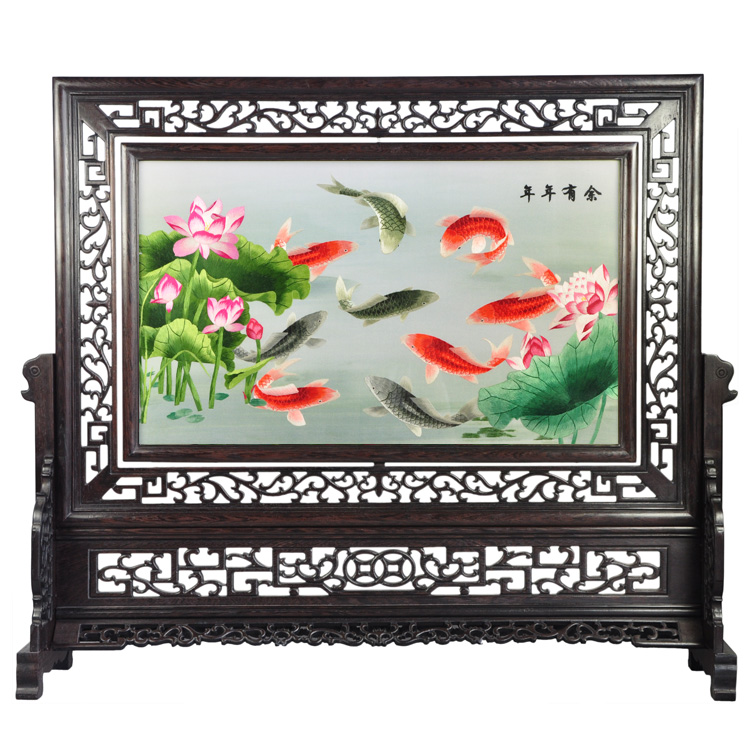 球友会官方入口年年有余手工双面绣刺绣桌屏江苏特色工艺品手工艺品
