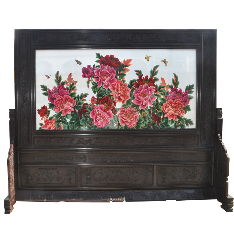 球友会官方入口屏风 纯手工刺绣精品 牡丹富贵图 开业周年礼品