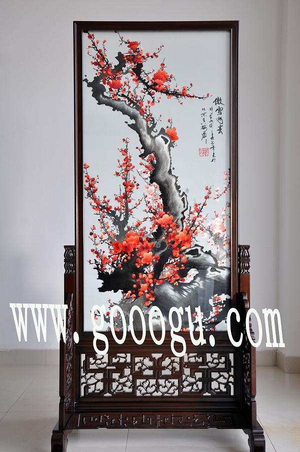 苏州精致手工刺绣隔断屏风,梅花小屏风,居家装饰品摆件