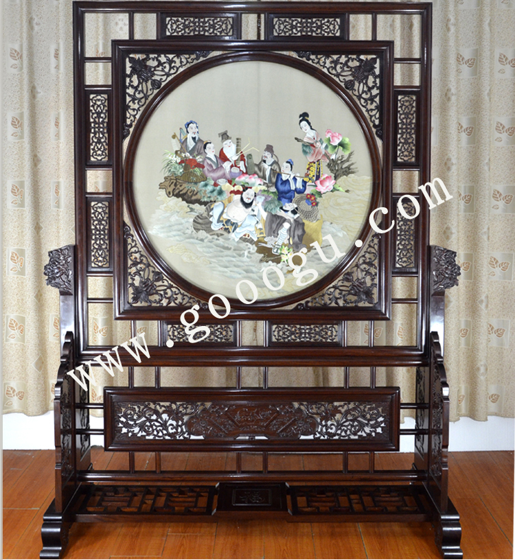 大型球友会官方入口红木屏风 双面手工刺绣 八仙过海玄关收藏品