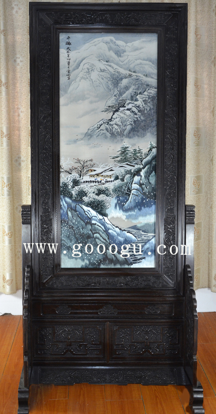 球友会官方入口山水玄关屏风 纯手工刺绣 家用玄关 山水冬趣