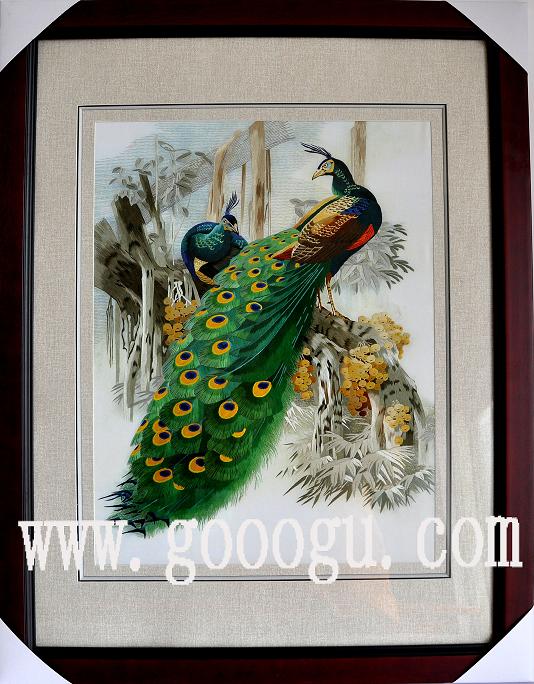 孔雀刺绣壁画|苏州刺绣挂画|刺绣手工艺品