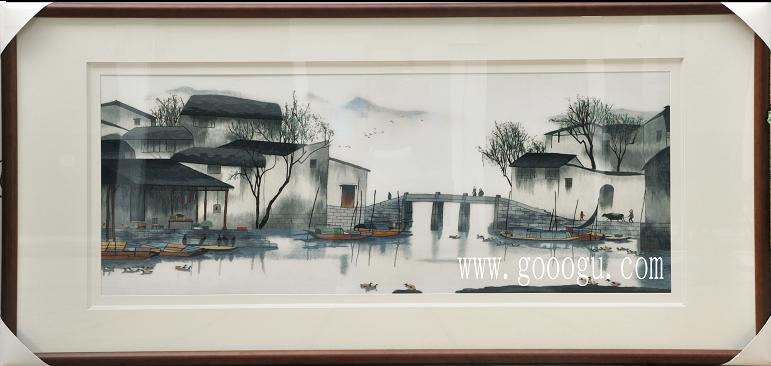 球友会官方入口水乡风情壁画/小桥、流水江南风景画/中国风装饰壁画