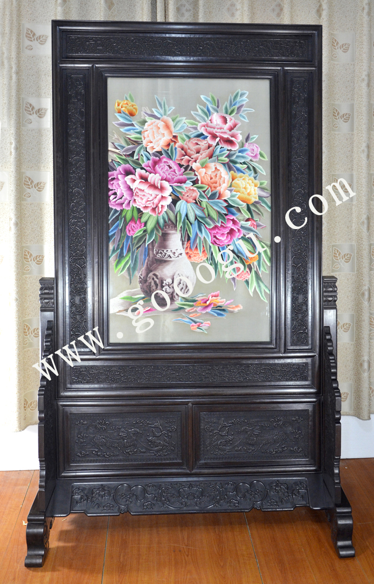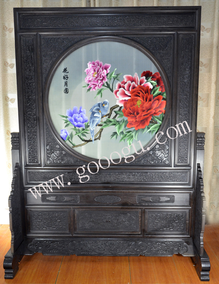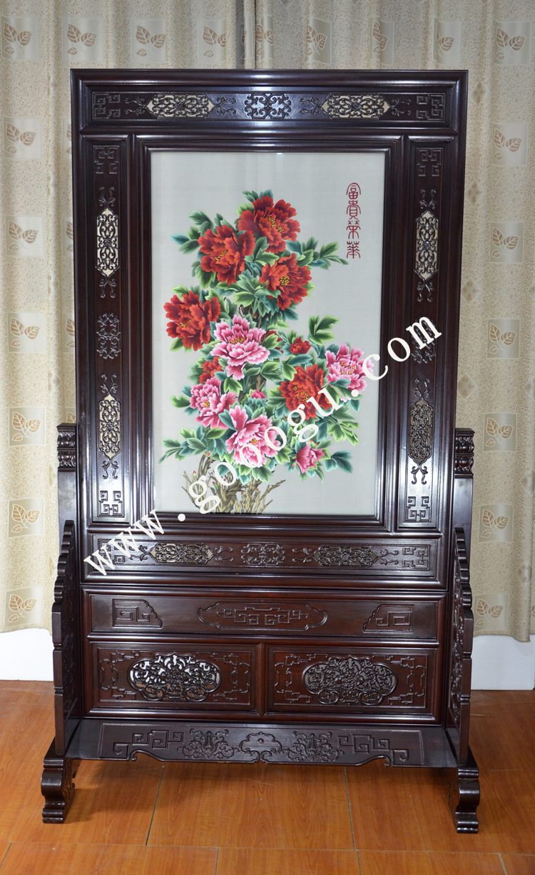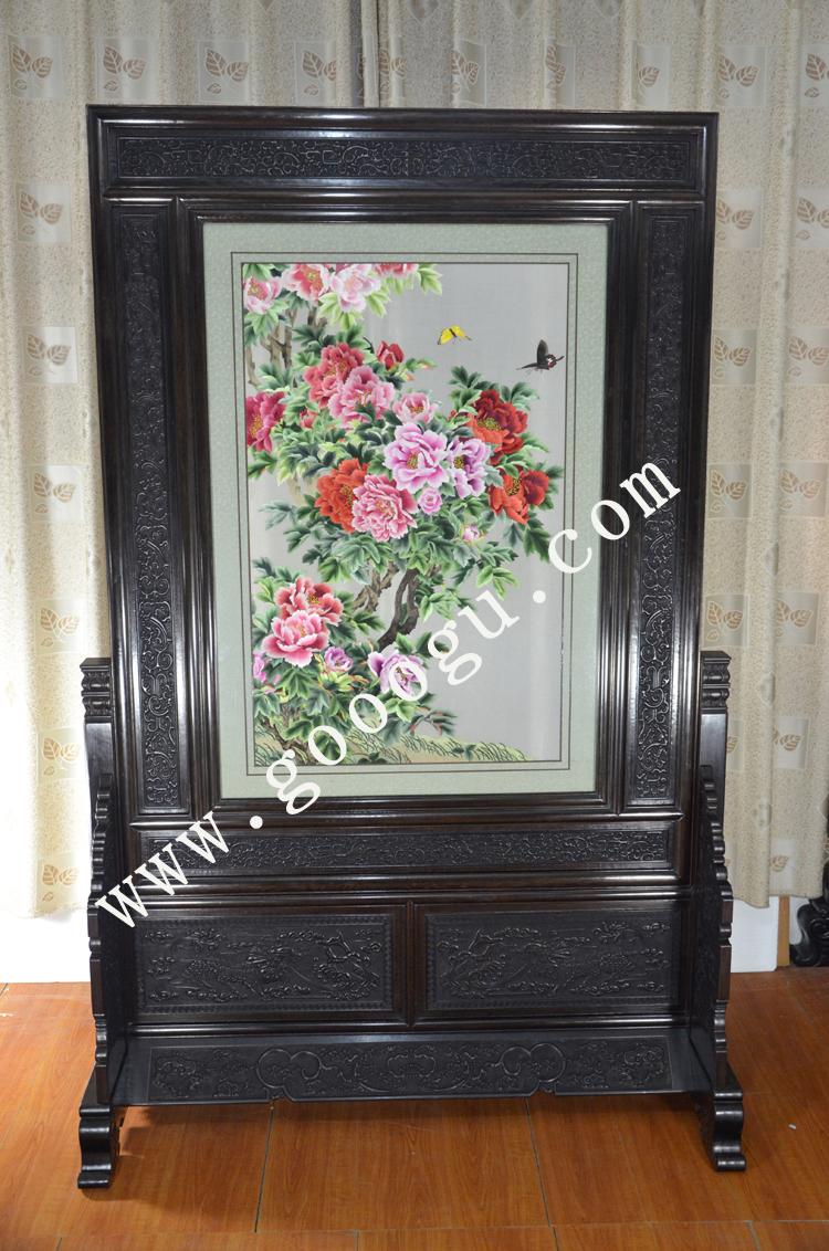玄关家用屏风 双面绣屏风 木质玄关 荣华富贵牡丹图