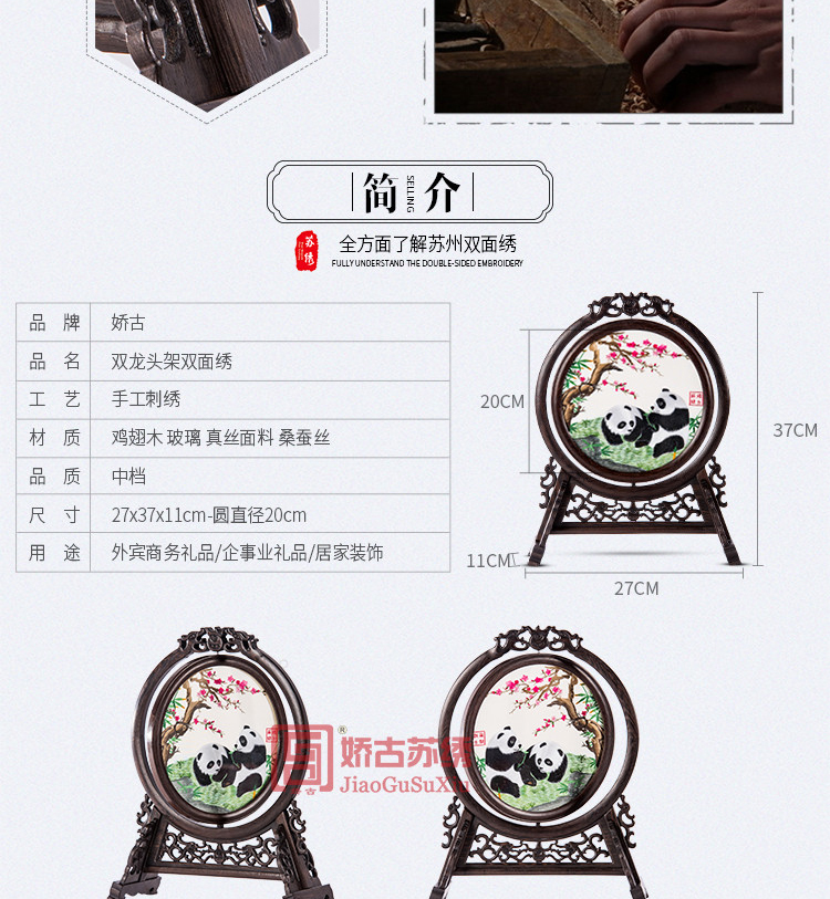 双龙头架双面绣|苏州刺绣礼品|企业定制刺绣礼品|定制企业LOGO礼品