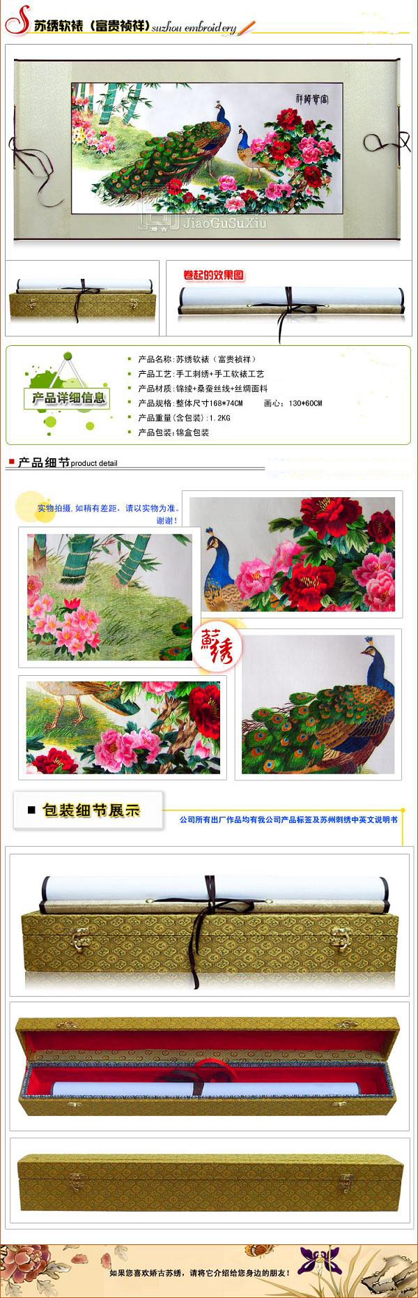 【娇古球友会官方入口】球友会官方入口软裱装饰画、纯手工刺绣、精品孔雀图、客厅装饰画