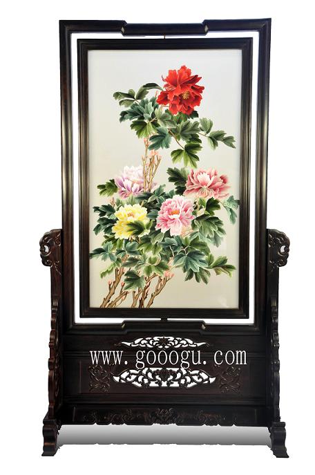 产品名称:精品紫檀双面绣(富贵牡丹) 产品规格:刺绣图案尺寸 30X50CM 外框整体尺寸最宽处43CM,高78CM 产品工艺:苏州绣娘手工刺绣。 产品材质:真丝面料+桑蚕丝线+玻璃+紫檀木架 产品包装:锦盒礼品装。 收藏级别,限量发行,娇古球友会官方入口参考价,请来电咨询或联系在线客服。 最小起订量:1件----厂家直销,可当天发货