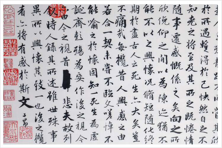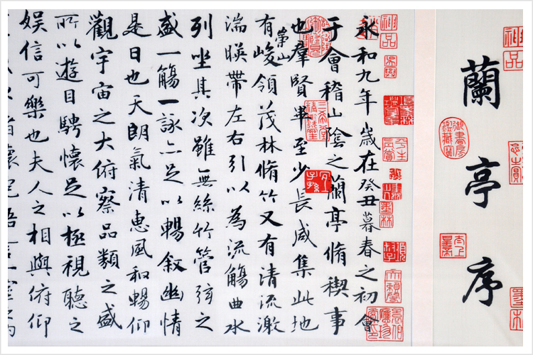 【品 牌】:娇古 (作品代码 D-1042) 【品 名】:兰亭序装饰画(手工球友会官方入口) 【品 质】:2-4丝刺绣 (球友会官方入口小知识:1根球友会官方入口丝线可分为16丝,中档刺绣皆为10丝所绣,中高档刺绣皆为6-8丝,高档刺绣皆为4-6丝,精品刺绣皆为1-4丝) 【尺 寸】:画心尺寸44*117cm 整体尺寸60*147cm 【产品工艺】:手工刺绣+真丝底料 【丝线材质】:蚕丝线 【用 途】:家居装饰及政府礼品、外宾礼品、生日礼物、贺寿礼品、领导升迁、出国礼品等等。 【出厂价格】:12000元 【作品介绍】:东晋穆帝(司马聃)永和九年(公元353年)三月初三日,王羲之和当时名士孙绰、谢安和释支遁等四十一人,为禊事活动,在兰亭宴集。与会的人士都有诗作,事后把这些诗篇汇编成集,《兰亭集序》就是王羲之为这个诗集所写的序言。序,文体名,是对书籍和文章举其纲要、论其大旨的一种文字,相当于引言。 《兰亭集序》文字灿烂,字字珠玑,是一篇脍炙人口的优美散文,它打破成规,自辟径蹊,不落窠臼,隽妙雅逸,不论绘景抒情,还是评史述志,都令人耳目一新。虽然前后心态矛盾,但总体看,还是积极向上的,特别是在当时谈玄成风的东晋时代气氛中,提出一死生为虚诞,齐彭殇为妄作,尤为可贵。《兰亭集序[1]》的更大成就在于它的书法艺术。通篇气息淡和空灵、潇洒自然;用笔遒媚飘逸;手法既平和又奇崛,大小参差 ,既有精心安排艺术匠心,又没有做作雕琢的痕迹,自然天成。其中,凡是相同的字, 写法各不相同,各有变化,特别是字,达到了艺术上多样与统一的效果。《兰亭集序》是王羲之书法艺术的代表作,是中国书法艺术 史上的一座高峰,它滋养了一代又一代书法家。 在结构和章法上以情感为线索,叙中有情,以情说理。第一段在清丽的境界中,着重写乐字,由乐而转入沉思,引出第二段的痛字,在经过一番痛苦的思考后,不觉感到无限的悲哀,最后以一悲字作结。情感色彩迥乎不同,前后过渡却妥帖自然。 细节图