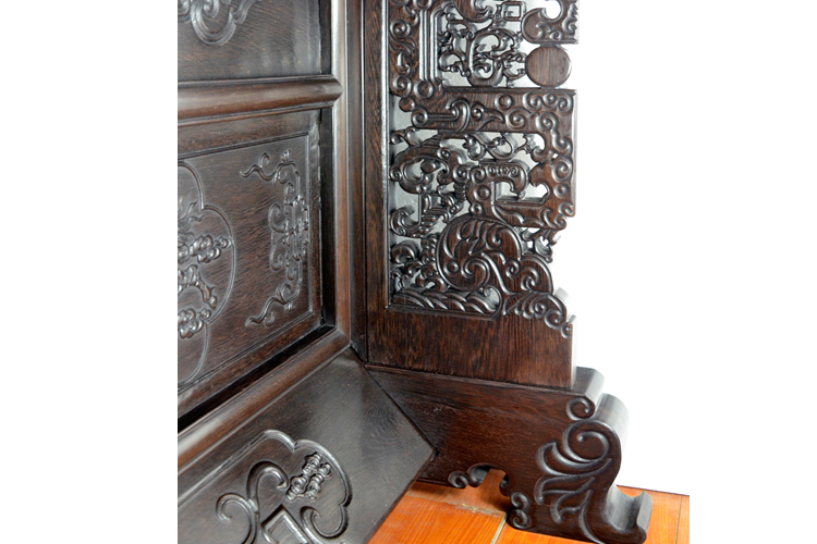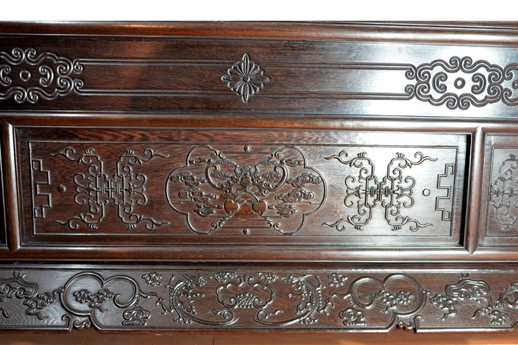 浮雕配有翔云和蝙蝠,寓意富贵吉祥 |
