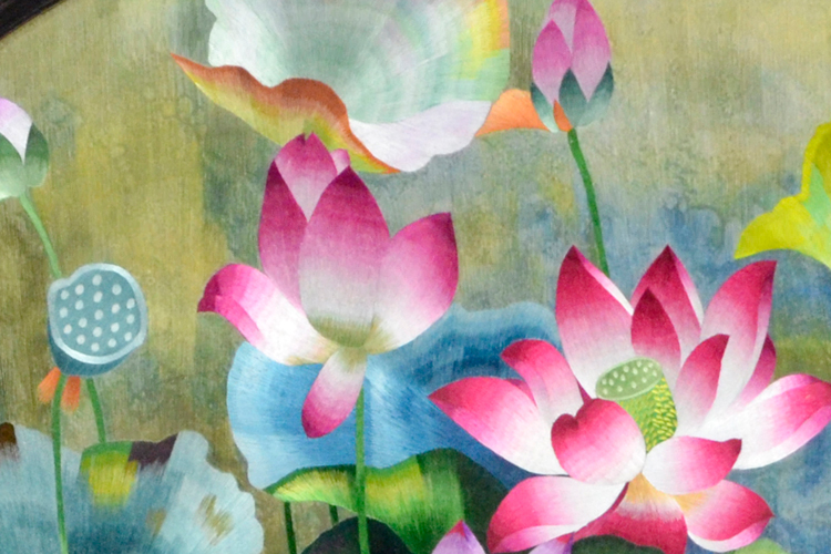 【产品名称】:满绣荷花屏风 (作品代码:P-1098) 【产品规格】:图案尺寸为100cm直径的圆 外框整体尺寸宽160cm,高210cm 【产品工艺】:手工刺绣 【产品材质】:真丝面料+鸡翅木框+桑蚕丝线+玻璃 【产品包装】:木箱包装,用海绵包扎,确保运输安全 【出厂价】:36800元 【产品运输】:我司负责发往客户指定地点,苏州附近城市可送货上门! 【产品说明】:此款双面绣屏风,是由苏州工艺师耗时三个月精心手工刺绣而成,刺绣图案以荷花为题材绣工精细,颜色搭配均匀过渡自然,整体给人舒适,惬意之感,屏风的框架选用鸡翅木为料,是球友会官方入口屏风中的经典作品。是家用玄关或办公室玄关的雅致礼品!欢迎亲临娇古球友会官方入口展示厅观看实物! 【作品欣赏】 .jpg)
