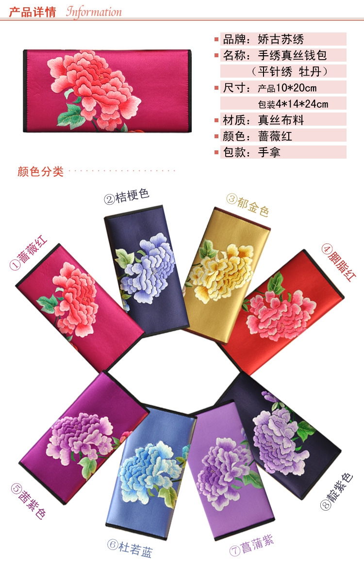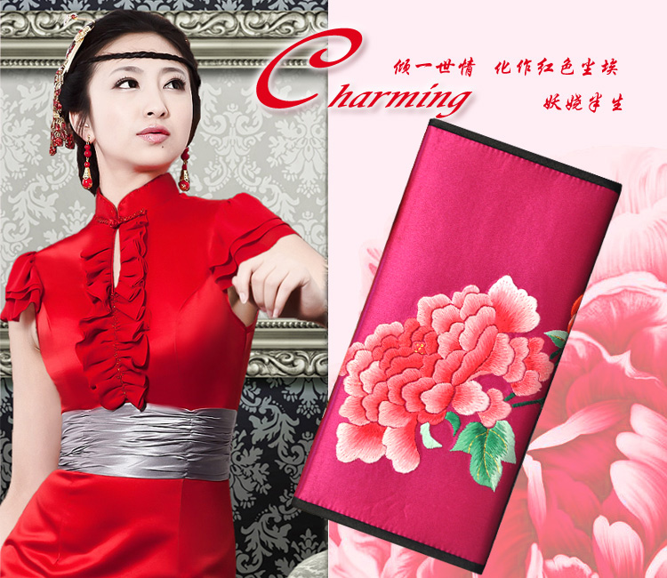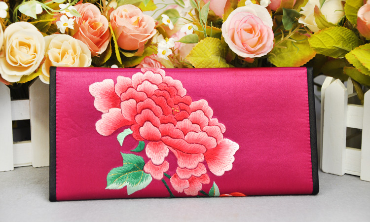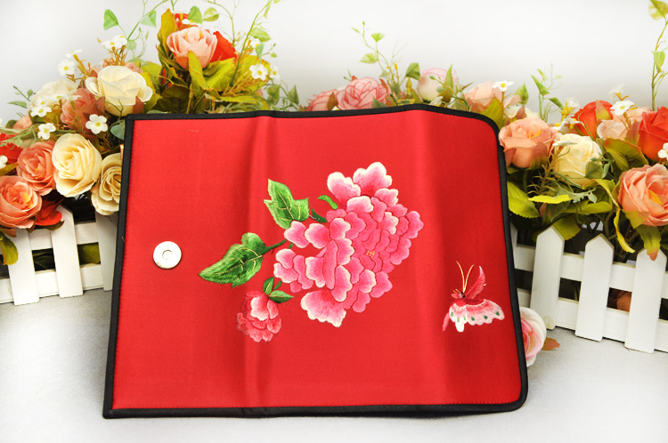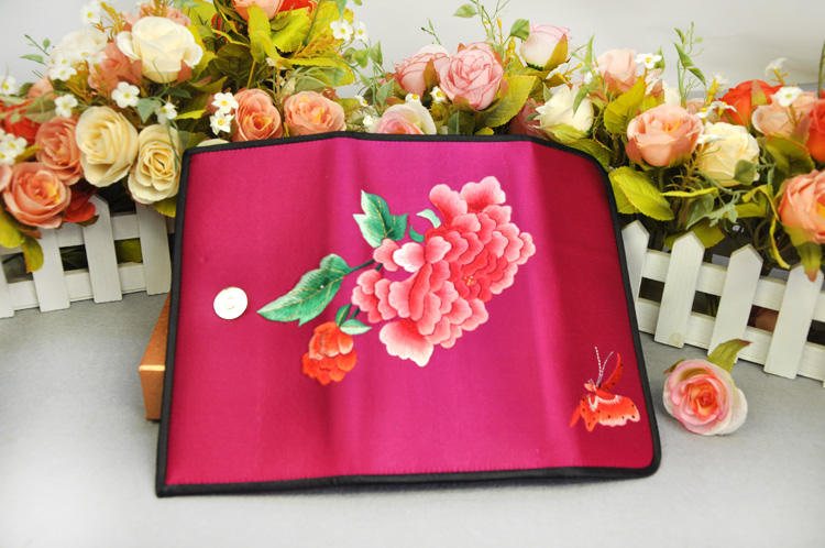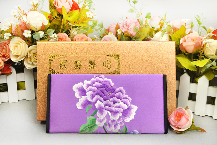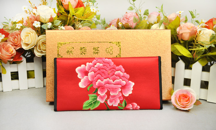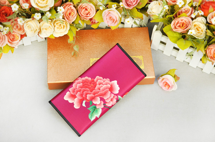 平绣牡丹 纯手工刺绣 球友会官方入口钱包 高档特色礼品 送领导送外国人礼品