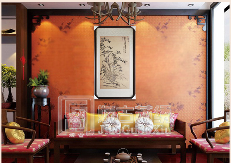 【品 牌】:娇古 (作品代码 D-1069)【品 名】:韵林三友装饰画【尺 寸】:画心尺寸50*90cm 整体尺寸70*125cm【产品工艺】:手工刺绣【丝线材质】:蚕丝线 【用 途】:政府礼品、个人收藏、外宾礼品、生日礼物、贺寿礼品、领导升迁、出国礼品等等。【出厂价格】:4200元