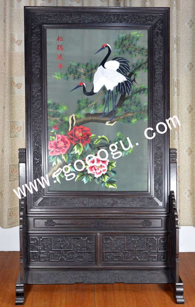 球友会官方入口玄关屏风 松鹤延年 手工刺绣 鸡翅木 祝寿礼品 送长者