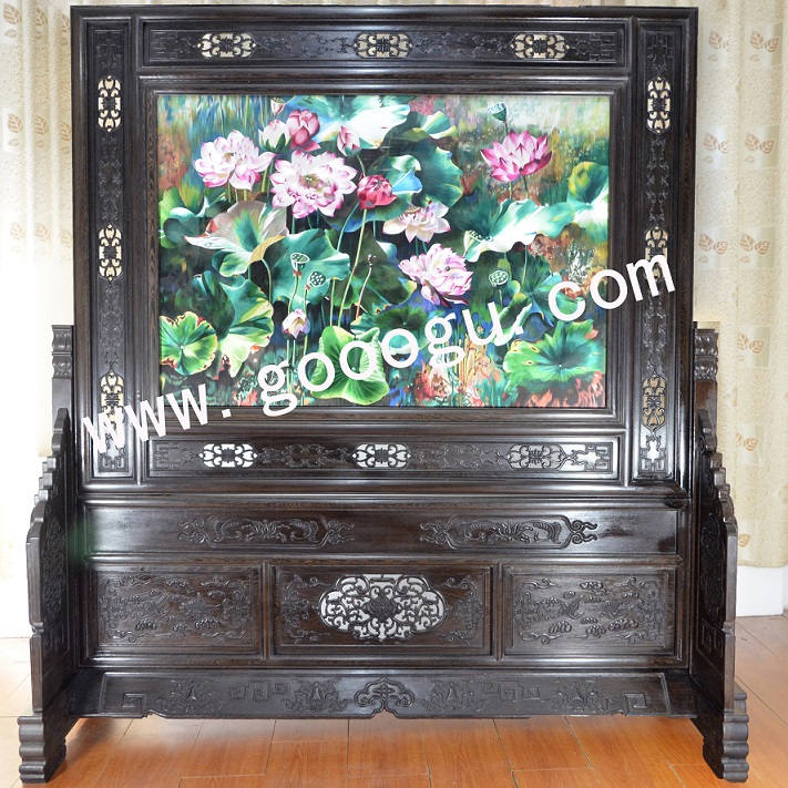 球友会官方入口精品屏风 满绣隔断 纯手工精品 荷花 中式屏风