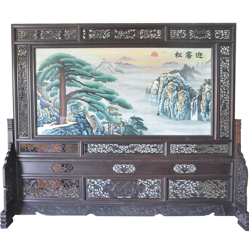 风景玄关屏风 双面绣酒店隔断 迎客松 手工刺绣 包物流精品推荐
