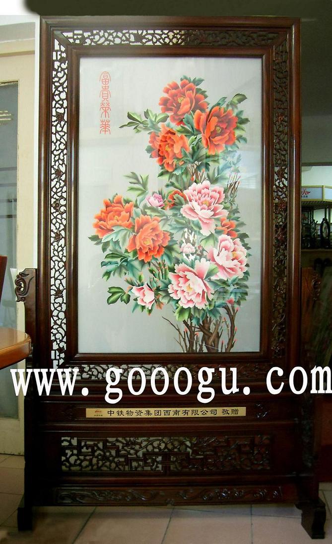 大型牡丹刺绣屏风&双面绣落地屏风&单位开业庆典---嘉善蓝森机械公司赠