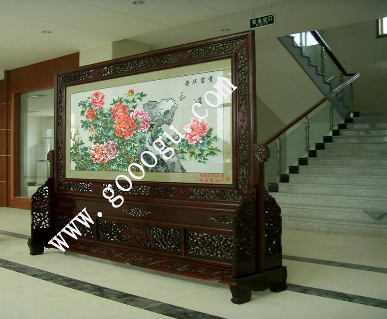 大型红木屏风定做&刺绣屏风来样定做加工*双面绣大堂屏风---山东某五星级酒店订