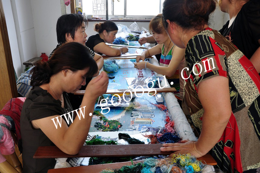 娇古球友会官方入口绣娘正在一起认真研讨刺绣的工艺和绣法,确保作品达到行业高水平