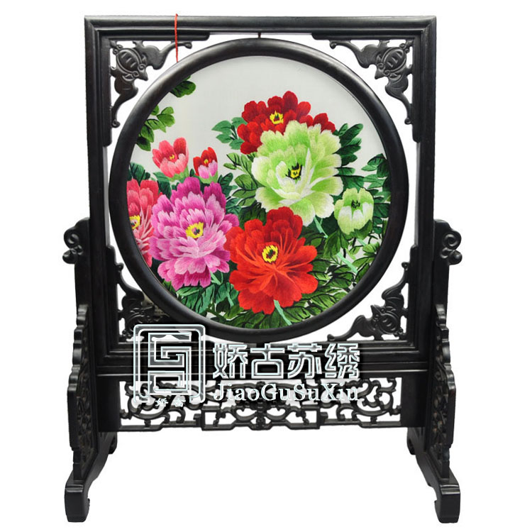双龙头架双面绣|苏州刺绣礼品|企业定制刺绣礼品|定制企业LOGO礼品