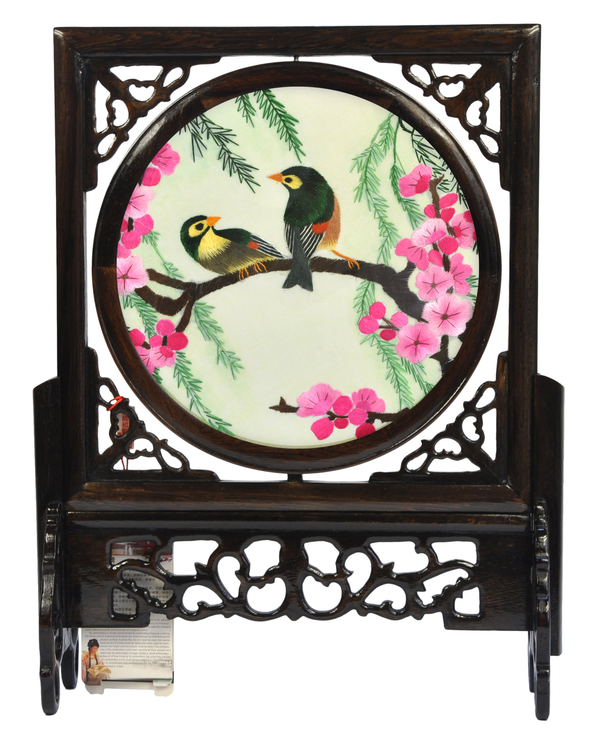 新款娇古16X25CM鸡翅木双面绣竖座屏,苏州本土手工艺品企业商务刺绣礼品