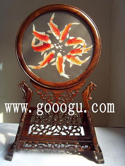 娇古球友会官方入口木质屏风 玄关双面绣 简易大方 十二红鱼图特色中国风