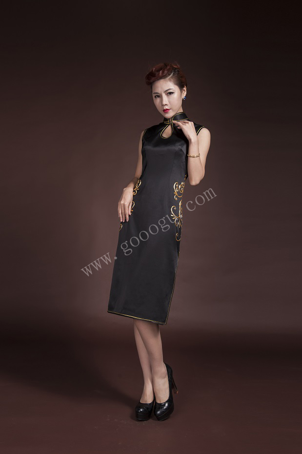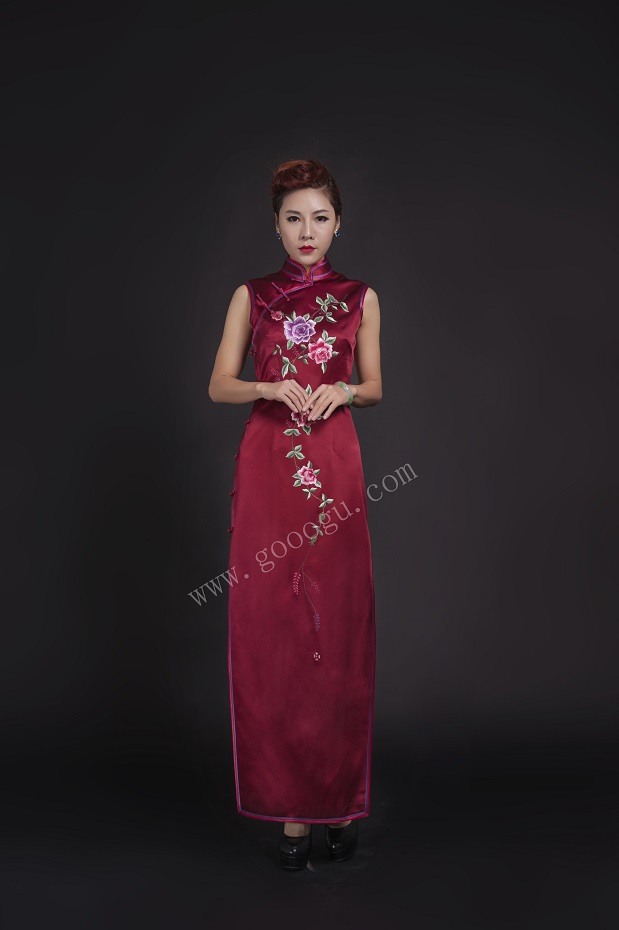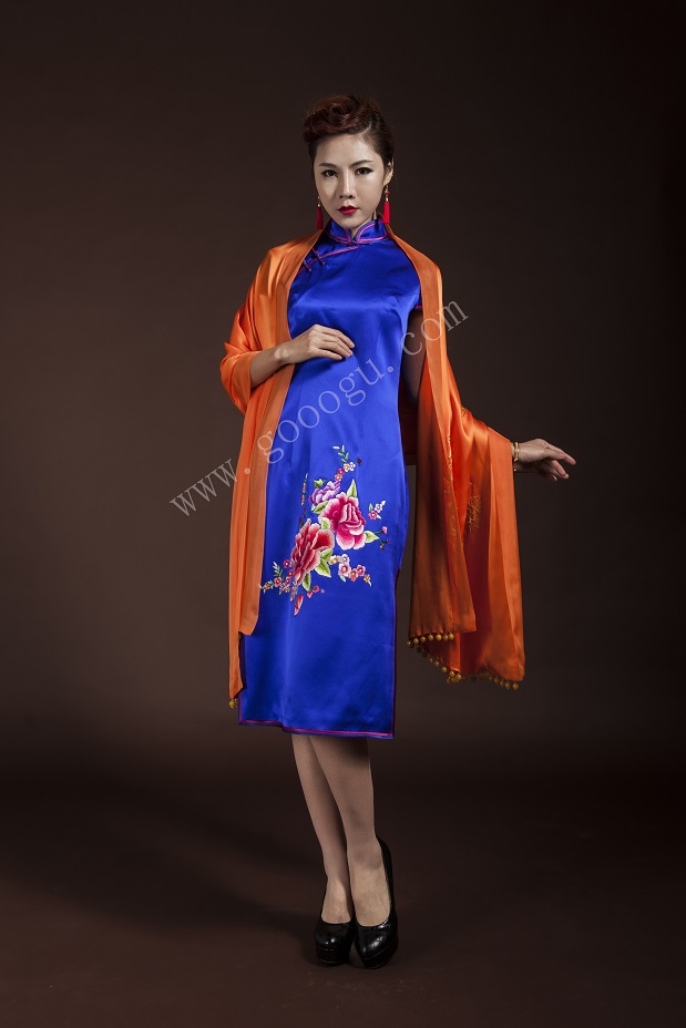娇古丝绸纯手工刺绣礼服旗袍、流行服装舞会聚会专用服饰