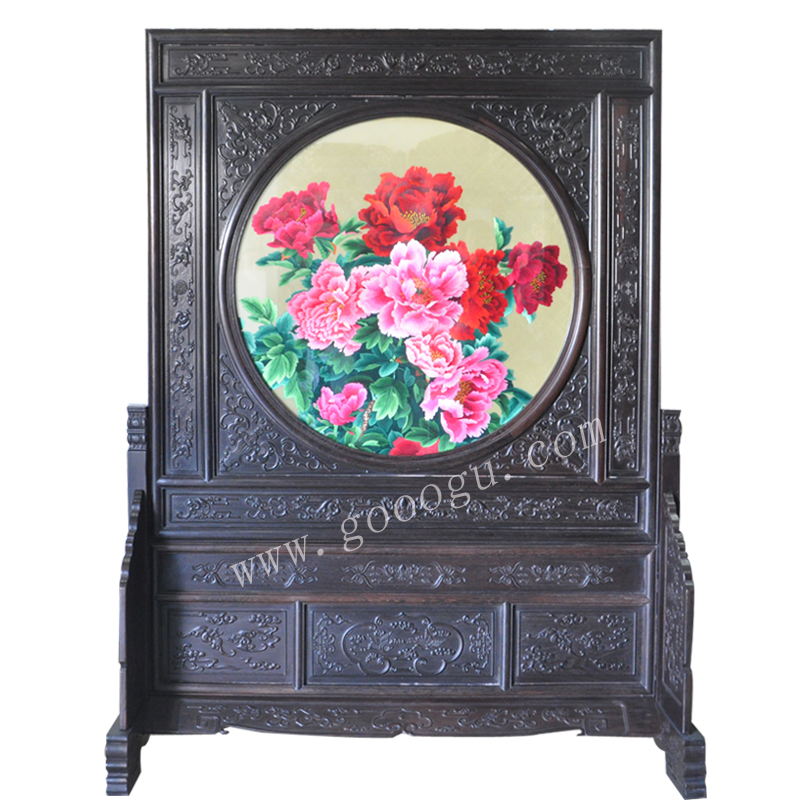 中国风隔断屏风 牡丹图双面绣 会所酒店玄关入口摆件