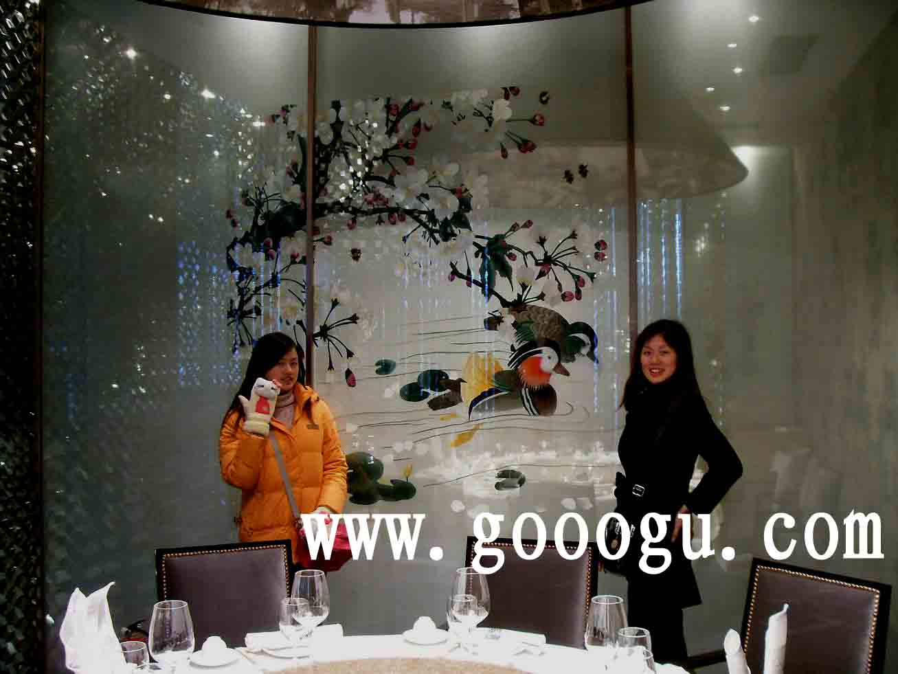 产品名称:大型酒店包厢隔断(手工双面绣) 产品规格:370*420CM 产品工艺:绣娘手工刺绣双面绣 产品材质:真丝面料,桑蚕丝线,钢化玻璃(两块厚为12mm钢化玻璃密封) 产品说明:此大型包厢球友会官方入口隔断现位于苏州园区圆融时代广场的苏浙汇饭店二楼。苏浙汇饭店下属金萌集团,是国内知名的连锁餐馆企业。是中国百强餐饮企业。此工程是由香港著名的无相室内设计公司设计,由中国装饰百强企业上海康业公司施工的一个综合型工程。由于我司在行业内的美誉度及良好的信誉度被指定为特定球友会官方入口加工商! 二楼幽雅的轻音乐环境配上古典精美的球友会官方入口文化,是种超值的享受。欢迎去苏州苏浙汇店品鉴!  刺绣工艺师刺绣中!  我司工人现场安装中!  正在欣赏中!(每件作品均有本公司的刺绣品牌印章,欢迎实地品鉴) |