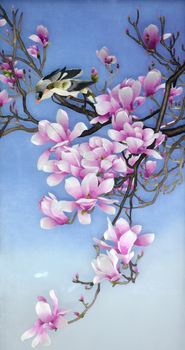 【产品名称】:红玉兰花鸟(双面绣) (作品代码:P-1109) 【产品规格】:图案尺寸宽度60cm,高度125cm 外框整体尺寸宽100cm,高205cm 【产品工艺】:手工刺绣 【产品材质】:真丝面料+鸡翅木框+桑蚕丝线+玻璃 【产品包装】:木箱包装,用海绵包扎,确保运输安全 【出厂价】:17000元 【产品运输】:我司负责发往客户指定地点,苏州附近城市可送货上门! 【产品说明】:此款红玉兰花鸟双面绣玄关屏风,是由苏州工艺师耗时数个月精心手工刺绣而成,刺绣图案以玉兰花鸟为题材绣工精细,颜色搭配均匀过渡自然,图案艳丽,屏风的框架选用进口的鸡翅木为料,是球友会官方入口屏风中的经典作品。居家办公的重要装饰品之一!欢迎亲临娇古球友会官方入口展示厅观看实物! 【作品欣赏】 .jpg)
