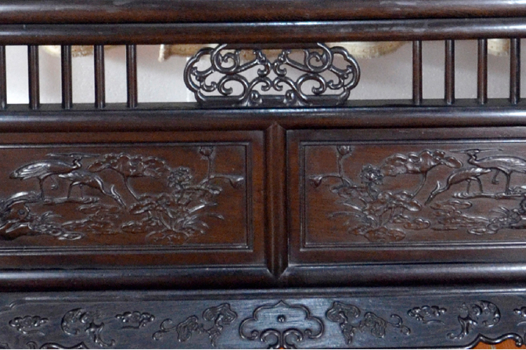 【产品名称】:荷花鱼屏风(双面绣) (作品代码:P-1203) 【产品规格】:图案尺寸宽度60cm,高度125cm 外框整体尺寸宽100cm,高205cm 【产品工艺】:手工刺绣 【产品材质】:真丝面料+鸡翅木框+桑蚕丝线+玻璃 【产品包装】:木箱包装,用海绵包扎,确保运输安全 【出厂价】:18000元 【市场零售参考价】:36000-48000元 【产品运输】:我司负责发往客户指定地点,苏州附近城市可送货上门! 【产品说明】:此款荷花鱼双面绣屏风,是由苏州工艺师耗时数个月精心手工刺绣而成,刺绣图案以传统的荷花鱼为题材绣工精细、寓意深刻,颜色搭配均匀过渡自然,屏风的框架选用进口的鸡翅木为料,是球友会官方入口屏风中的珍稀作品。是居家装饰的重要装饰品之一!欢迎亲临娇古球友会官方入口展示厅观看实物! 【作品欣赏】 .jpg)