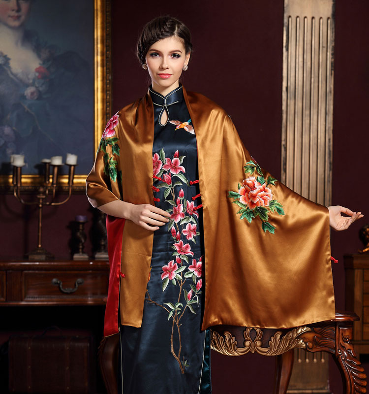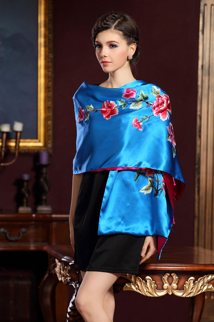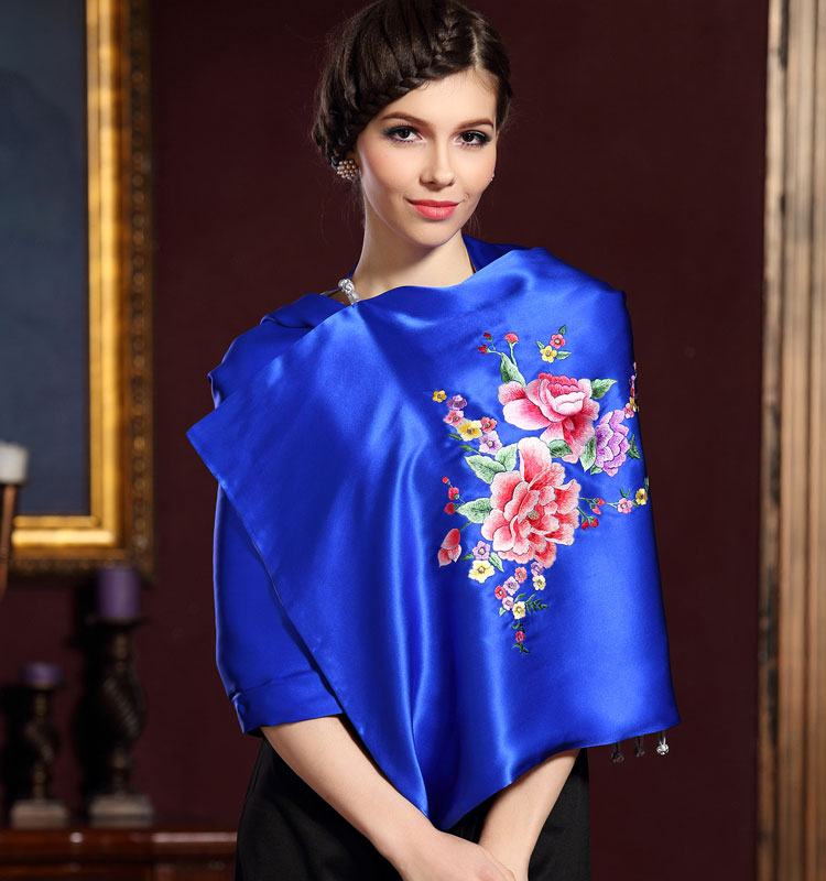 高档丝绸披肩 围巾 真丝 双层 手工刺绣 绣花 送客户
