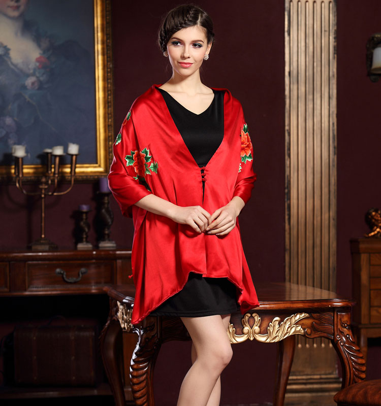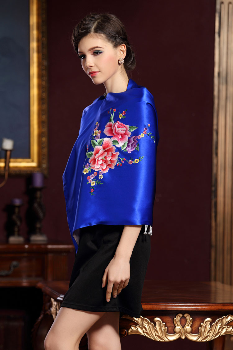 真丝礼品 高档手工刺绣 披肩精品 纯真丝 送客户 出国礼品