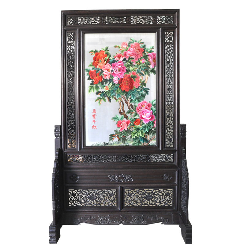 【产品名称】:万紫千红(双面绣) (作品代码:p-1519) 【产品规格】:图案尺寸宽度70cm,高度110cm 外框整体尺寸宽125cm,高215cm 【产品工艺】:手工刺绣 【产品材质】:真丝面料+鸡翅木+桑蚕丝线+玻璃 【产品包装】:木箱包装,用海绵包扎,确保运输安全 【出厂价】:14800元 【产品运输】:我司负责发往客户指定地点,苏州附近城市可送货上门! 【产品说明】:万紫千红双面绣屏风,是由苏州工艺师耗时三个月精心手工刺绣而成,刺绣图案以国花牡丹为题材绣工精细,简约大方,颜色搭配均匀过渡自然,屏风的框架选用进口的鸡翅木为料,是球友会官方入口屏风中的经典作品。是居家和办公的重要装饰品之一!欢迎亲临娇古球友会官方入口展示厅观看实物! |